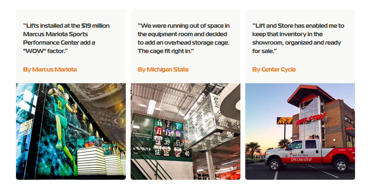 Lift and Store has been a leader in storage innovation since 1992, with over 33,000 systems installed worldwide across retail, healthcare, education, government, wholesale, and more. Their engineered solutions reclaim overhead space, expand floor storage capacity, reduce injuries, and deliver faster ROI than conventional storage methods.