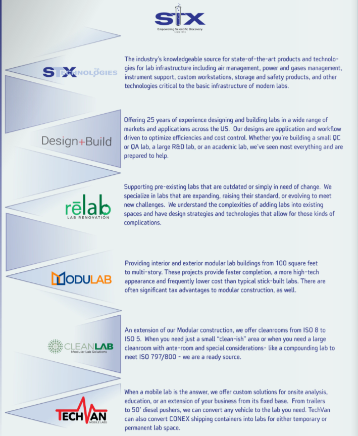 Since 1995 STX Labs has been an industry leader in providing labs industry leading products and design and construction services. Their team is built upon experienced lab professionals because they’re more than just a supplier.